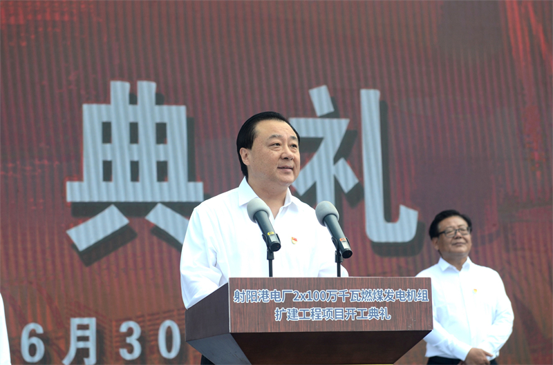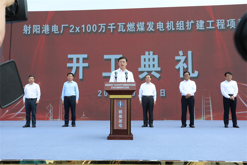 6月30日,射阳港发电公司扩建场地彩旗飘扬,方阵齐列,设备机械蓄势待发,施工队伍斗志昂扬,一派热闹喜庆氛围。上午9时58分,射阳港电厂2×100万千瓦燃煤发电机组扩建工程项目开工典礼在这里隆重举行。