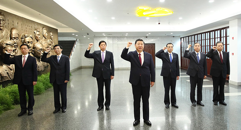 习近平带领中央政治局常委在中共一大会址重温入党誓词